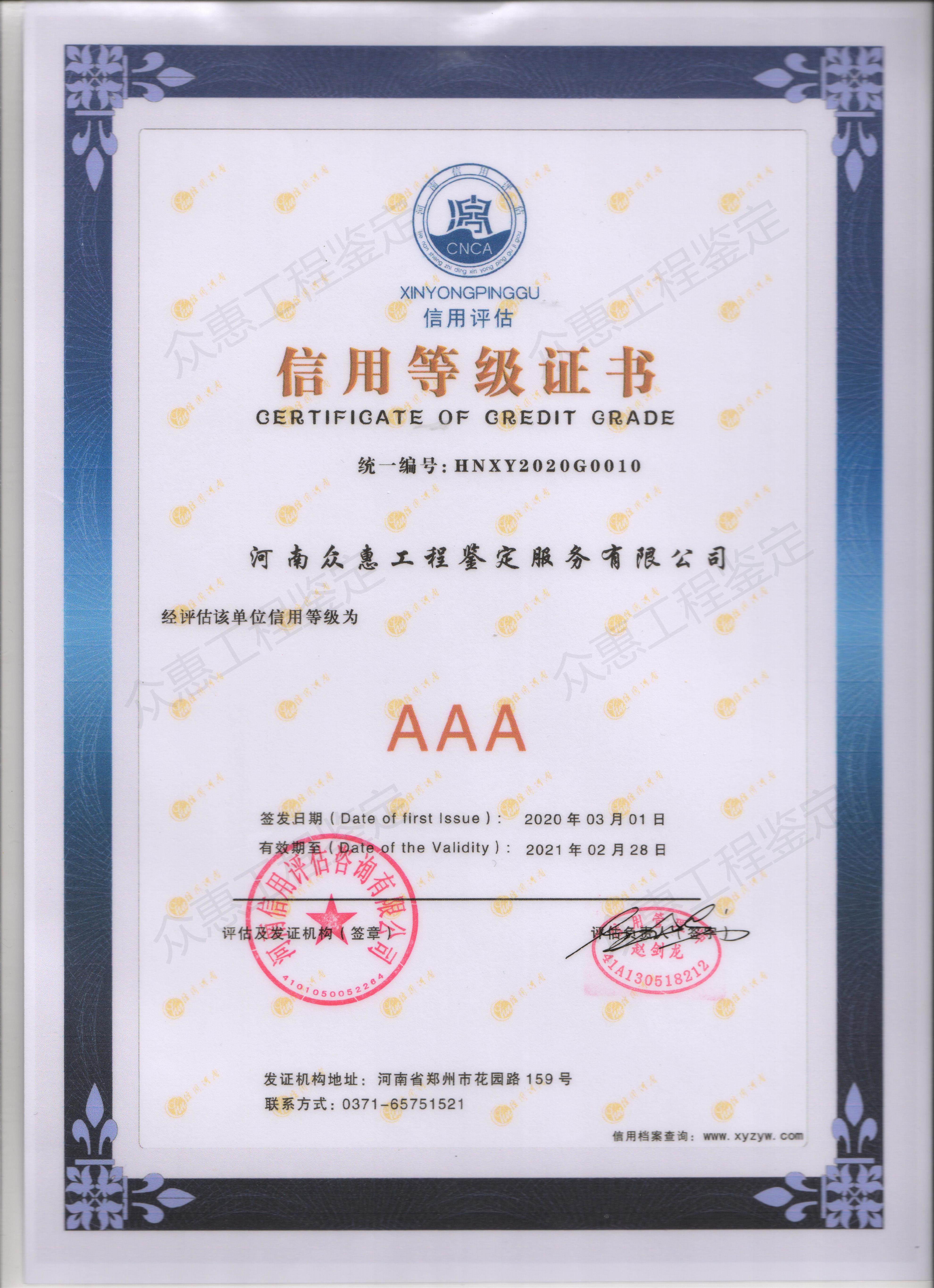 • 信用等級(jí)證書(shū) 信用等級(jí)證書(shū)